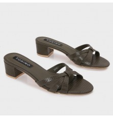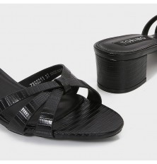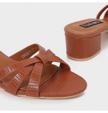 هذا النعال مناسب لإطلالتك اليومية، ذو كعب عريض 4 سم، ومقدمة مستديرة مفتوحة بنقشة جلد الأفعى، يمكن تنسيقه مع خيارات مختلفة