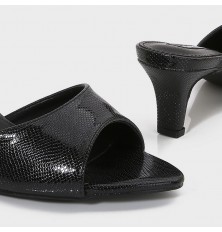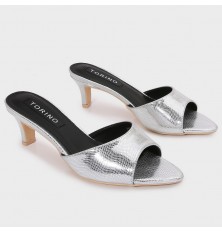 نعال مريح بتصميم أنيق، ذو كعب 4 سم، مقدمة مدببة بنقشة جلد الأفعى، متوفر بألوان يمكن تنسيقها مع خيارات مختلفة