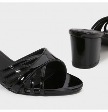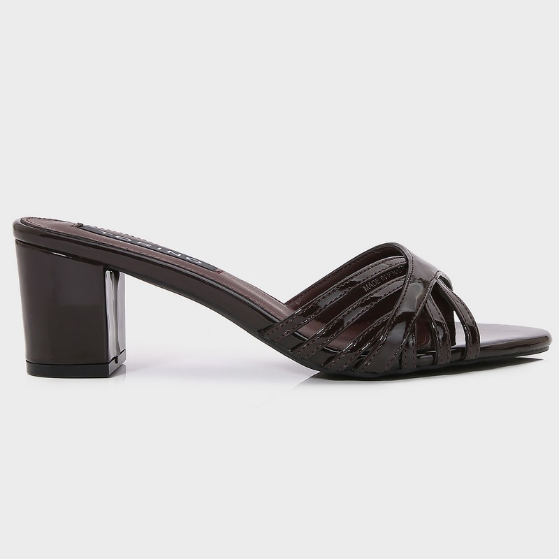 نعال كعب عريض 5سم بخامة من الجلد اللامع، وبتصميم مميز ,مريح ومناسب لجميع إطلالاتك, تميزي دائما بشرائك من متجر تورينو