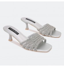 سيصبح هذا النعال المفضل لديك، ذو كعب 5 سم وتصميم فخم مزين بالكريستال، متوفر بألوان يمكن تنسيقها مع خيارات مختلفة