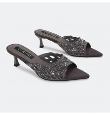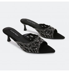 لا غنى عن هذا النعال ضمن تشكيلة أحذيتك ، ذو كعب أنيق 5سم، مقدمة مدببة بخامة من الشامواه مزينة بالستراس، مناسب لكافة الأوقات