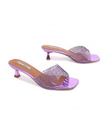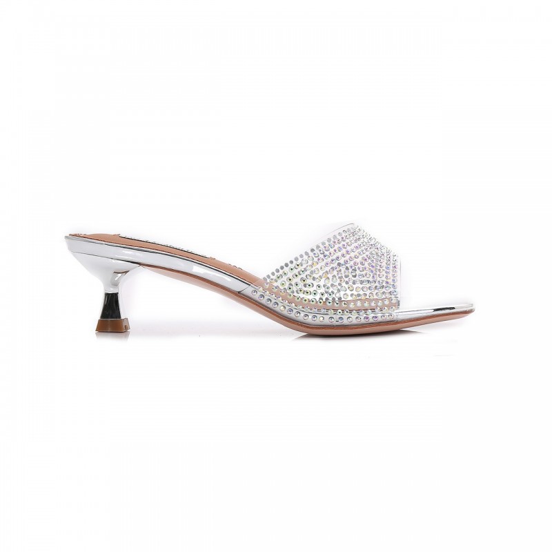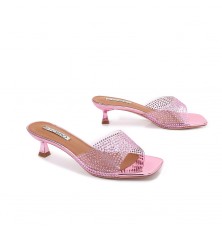 نعال كعب قصير بتصميم أنيق شفاف مرصع بحبات الستراس