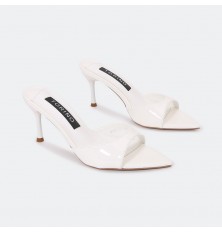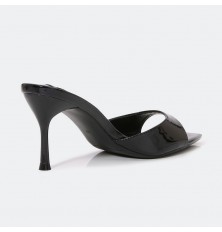 QXQ1522 نعال كعب من الجلد اللامع بمقدمة مدببة