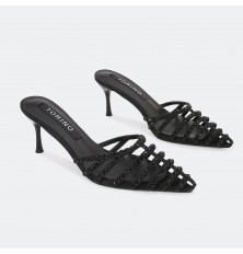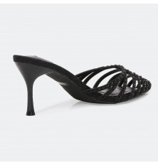 QXQ1530 نعال كعب بمقدمة مدببة مزين بأحجار لامعة