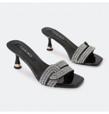لا غنى عن هذا الكعب 5 سم في تشكيلة أحذيتك , بتصميمه الأنيق المرصع بالستراس اللامع , مريح ومناسب لكافة الأوقات