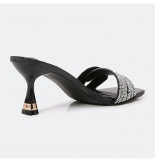 LXQ1535 نعال كعب قصير مرصع بالستراس