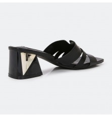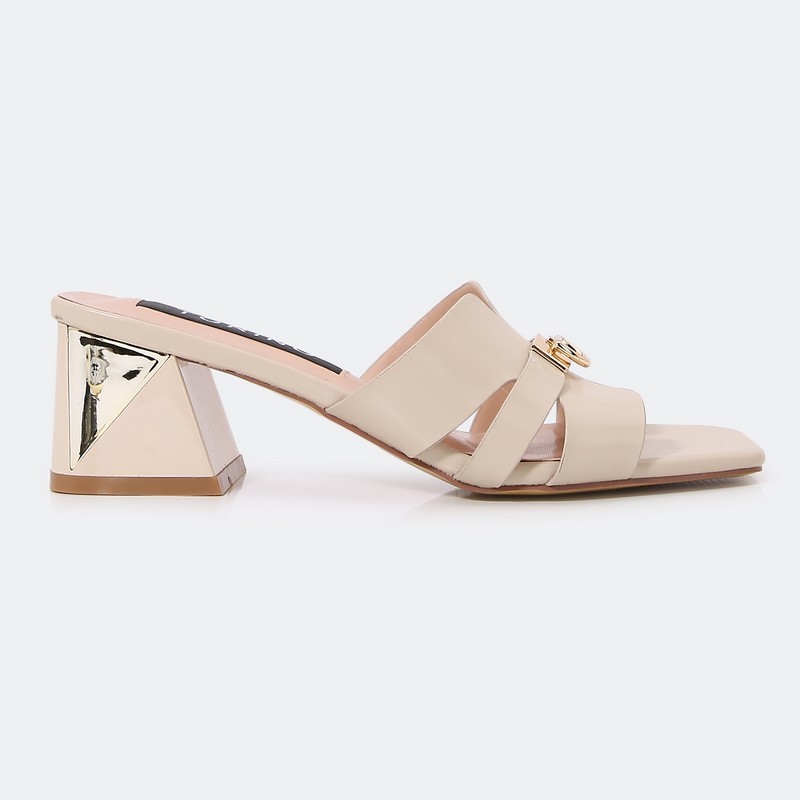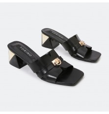 نقدم لكِ نعال كعب 4 سم , مريح وعملي مناسب للإستخدام اليومي , بمقدمة مربعة مزين بإكسسوار ذهبي