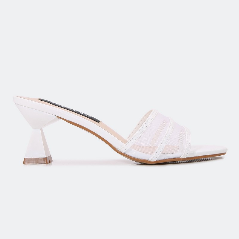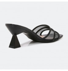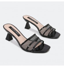 نقدم لكِ نعال كعب 4 سم , مريح ومناسب للإستخدام اليومي , بمقدمة مربعة وجزء علوي من التول