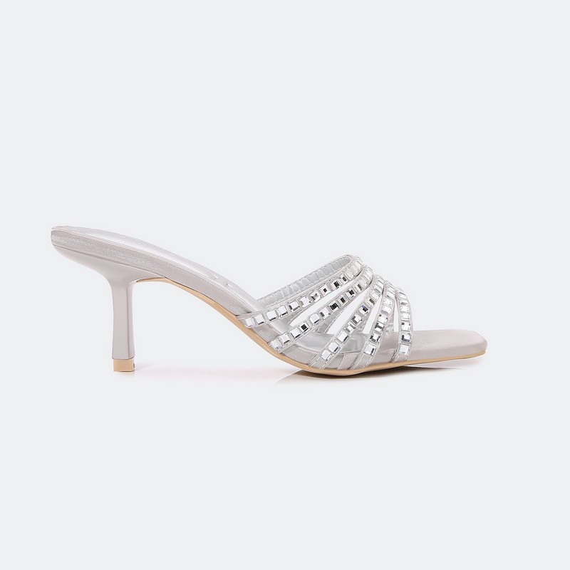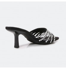لا غنى عن هذا الكعب 5 سم في مجموعة أحذيتك , بتصمبم شرائط من الجلد مرصعة بأحجار لامعة , مريح ومناسب لكافة الأوقات
