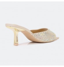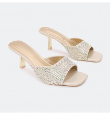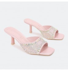 تألقي مع هذا الكعب 5 سم , تصميم أنيق ذو مقدمة مربعة مزين بالستراس , مريح ومناسب لكافة الأوقات