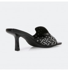 يُعد هذا الكعب 5 سم خيار مثالي لإطلالتك اليومية , تصميم مميز مزين بالستراس , ذو مقدمة مربعة