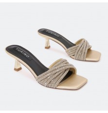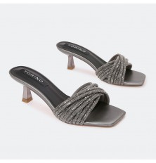 QXQ1600 نعال كعب ذو مقدمة مربعة مزين بحبال الكريستال