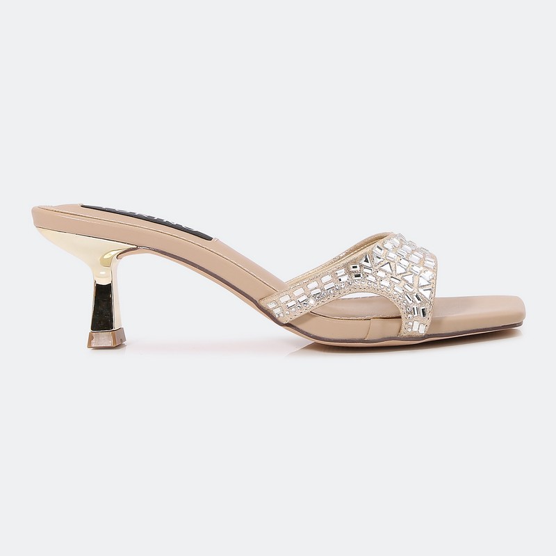 لا غنى عن هذا النعال بكعب 5 سم ضمن تشكيلة أحذيتك , ذو مقدمة مربعة مزين بالستراس و ألوان أنيقة , مناسب لكافة الأوقات
