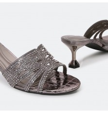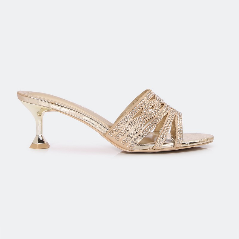 لا غنى عن هذا النعال ضمن تشكيلة أحذيتك , ذو كعب 5 سم وتصميم تريند مزين بالستراس , متوفر بألوان يمكن تنسيقها مع إطلالات مختلفة