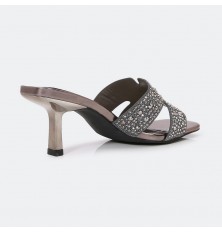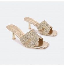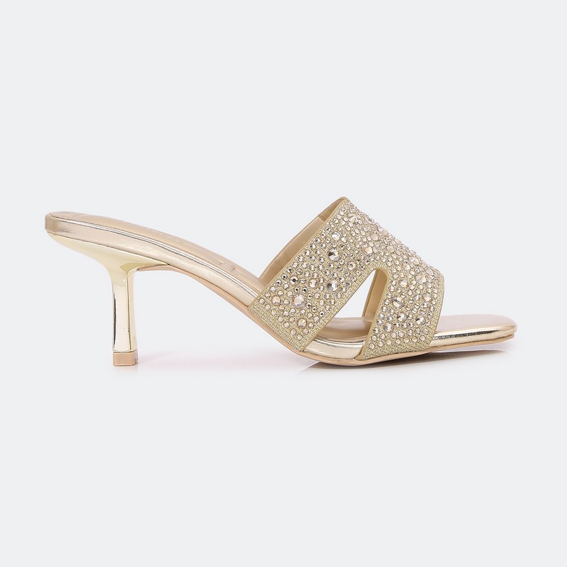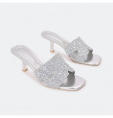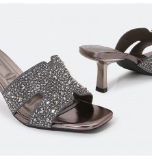 تميزي بإطلالتك مع هذا النعال بكعب 6 سم , وتصميم عصري مزين بالستراس البراق , متوفر بألوان أنيقة