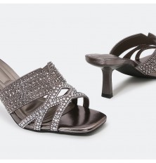 نقدم لكِ هذا النعال من تورينو , ذو كعب 5 سم وتصميم عصري مرصع بالستراس , مناسب لكافة الأوقات