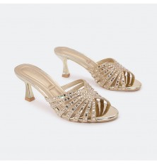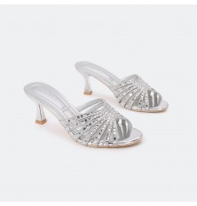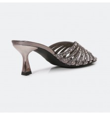 ZXQ1681 نعال كعب لامع بتصميم شرائط مزينة بالستراس