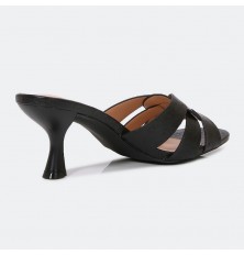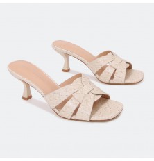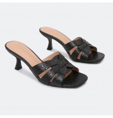 نقدم لكِ هذا النعال بتصميم عملي ومريح وانيق من الجلد المزركش على شكل شرائط متداخلة و كعب 5سم , متوفر بألوان لا غنى عنها