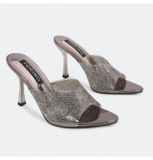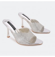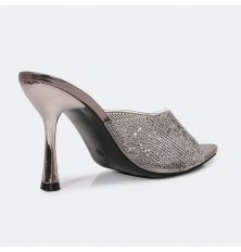 WXQ1796 نعال كعب لامع مرصع بالستراس الناعم