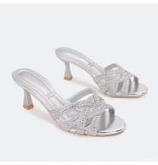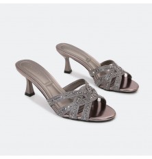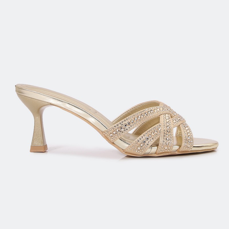 سيصبح هذا النعال بكعب 5 سم المفضل لديكِ , تصميم فخم ذو مقدمة مفتوحة مزين بحبات الستراس , يمكن تنسيقه مع إطلالات مختلفة