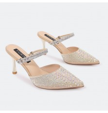 تألقي مع هذا الكعب 7 سم , تصميم أنيق ذو مقدمة مغلقة مزين بالستراس البراق , يمكن تنسيقه مع إطلالات مختلفة