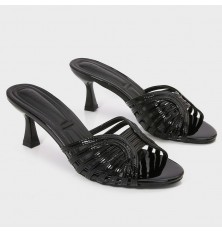 لا غنى عن هذا النعال ضمن تشكيلة أحذيتك، ذو كعب 7سم ومقدمة مستديرة، بألوان لامعة كلاسيكية، مناسب لكافة الأوقات