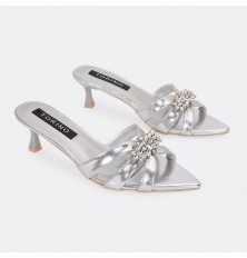 ستكتمل إطلالتك مع هذا النعال الأنيق من تورينو, كعب 4 سم، ذو مقدمة مدببة مزينة ببروش براق, مناسب لكافة الأوقات
