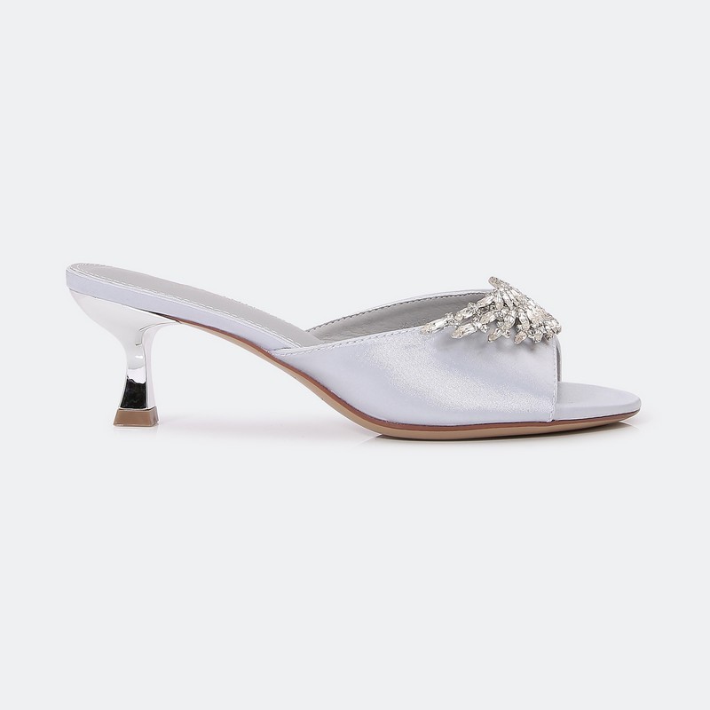 HXQ519 نعال كعب بخامة من الساتان مزين ببروش