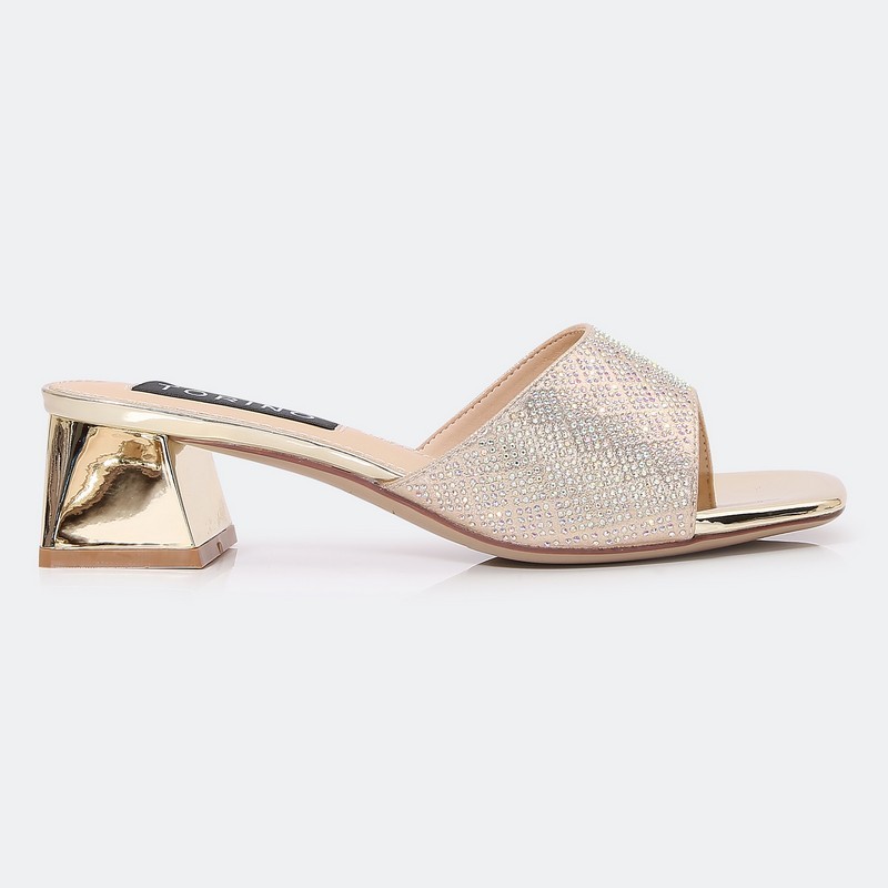 لا غنى عن هذا الكعب 4 سم في تشكيلة أحذيتك , ذو تصميم أنيق لامع مزين بحبات الستراس , مريح ومناسب لكافة الأوقات