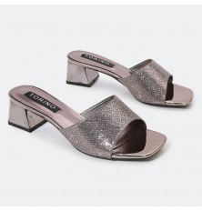HXQG22 نعال ذو كعب عريض لامع مزين بحبات الستراس