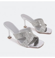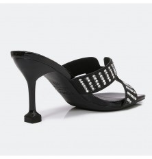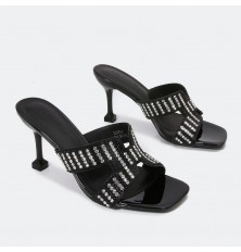 تألقي مع هذا النعال ذو كعب 7 سم , تصميم عصري مزين بالستراس بمقدمة مربعة، مناسب لكافة الأوقات