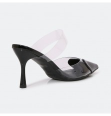 تألقي مع هذا النعال من تورينو بكعب 7 سم ، مقدمة مدببة لامعة مع جزء شفاف ، يمكن تنسيقه مع خيارات مختلفة