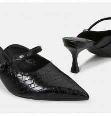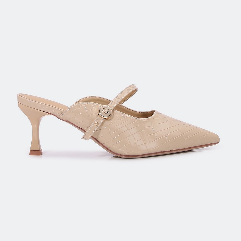 يعد هذا النعال مثالي لإطلالتك اليومية، ذو كعب 5سم مصمم من الجلد بنقشة مميزة بابزيم مدعم لراحتك، يمكن تنسيقه مع خيارات مختلفة