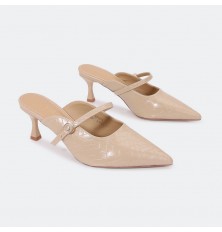 HXQB78 نعال كعب ذو مقدمة مغلقة بنقشة جلد الافعى