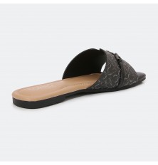 نقدم لك هذا النعال من تورينو، ذو مقدمة مربعة بنقشة مميزة ومزينة باكسسوار، متوفر بألوان لا غنى عنها ويمكن تنسيقها مع خيارات مختلفة