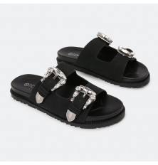 اليك هذا النعال من تورينو بحزامين مزينين ببروش مرصع بالكريستال، عملي ومريح، متوفر بألوان لافتة
