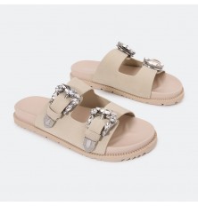 ZX2770 نعال مسطح بحزامين مزينين ببروش