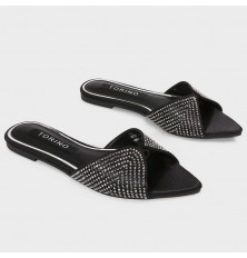 يجمع هذا النعال بين الراحة و الأناقة, بتصميم جذاب ذو مقدمة مدببة مزين بالستراس, مناسب للإستخدام اليومي