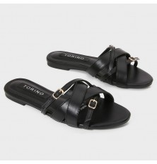 بتصميم أنيق وعملي نقدم لكِ هذا النعال المسطح ذو مقدمة مستديرة، مريح ومناسب للإستخدام اليومي