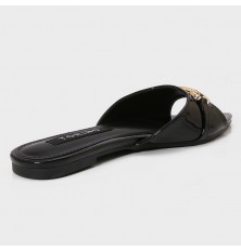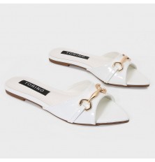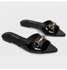 نقدم لكِ هذا النعال من تورينو، تصميم كلاسيكي بخامة من الجلد اللامع، مع مقدمة مدببة مزينة باكسسوار ذهبي, متوفر باللونين الأبيض والأسود