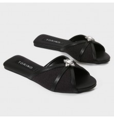 بتصميم أنيق وعملي نقدم لكِ هذا النعال من تورينو، خامة من الجلد الصناعي المحزز بمقدمة مستديرة مزينة ببروش, متوفر بألوان أساسية ضمن تشكيلة أحذيتك