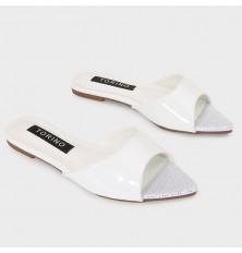 لا غنى عن هذا النعال ضمن تشكيلة أحذيتك، ذو مقدمة مدببة لامعة، مزين بالستراس, يمكن تنسيقه مع إطلالات مختلفة