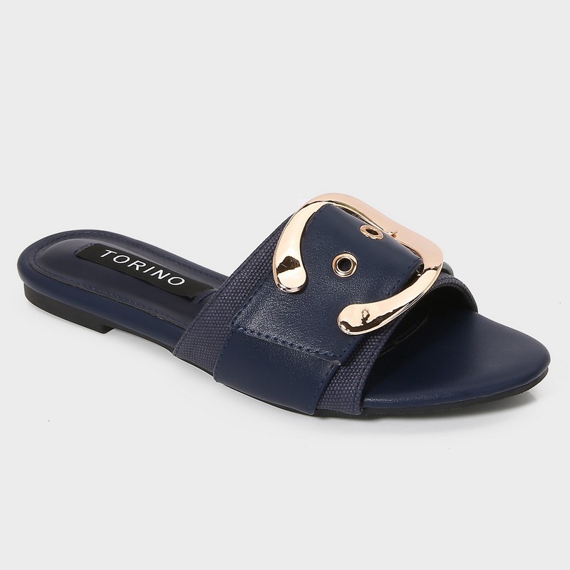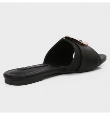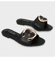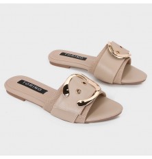 نعال فلات مريح وعملي من الجلد المتين ,بتصميم أنيق, مع ابزيم أمامي مزود بفقل ذهبي، متوفر بألوان لا غنى عنها