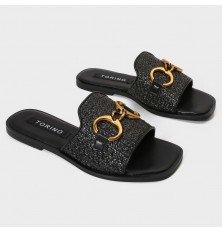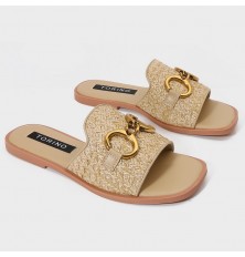 ZX2840 نعال مسطح مزين بإكسسوار ذهبي