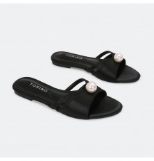 نقدم لكِ هذا النعال المسطح من تورينو, ذو مقدمة مستديرة بخامة من الساتان المزين باللؤلؤ، مناسب للإستخدام اليومي