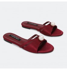 ZX2893 نعال مسطح بخامة من الساتان المزين باللؤلؤ