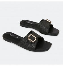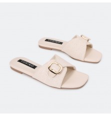 نعال فلات مريح وعملي , بتصميم أنيق, مزين بإكسسوار ذهبي ، مناسب للإستخدام اليومي