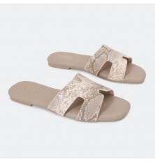 OX2857 نعال مسطح عصري بنقشة جلد الأفعى