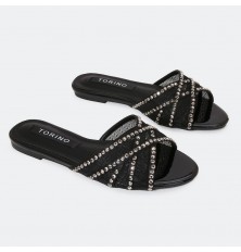 تألقي مع هذا النعال المسطح من تورينو، تصميم أنيق بجزء من التول المزين بالستراس, متوفر بألوان لا غنى عنها