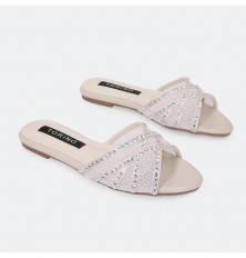 ZX2967 نعال مسطح ذو مقدمة من التول المزين بالستراس